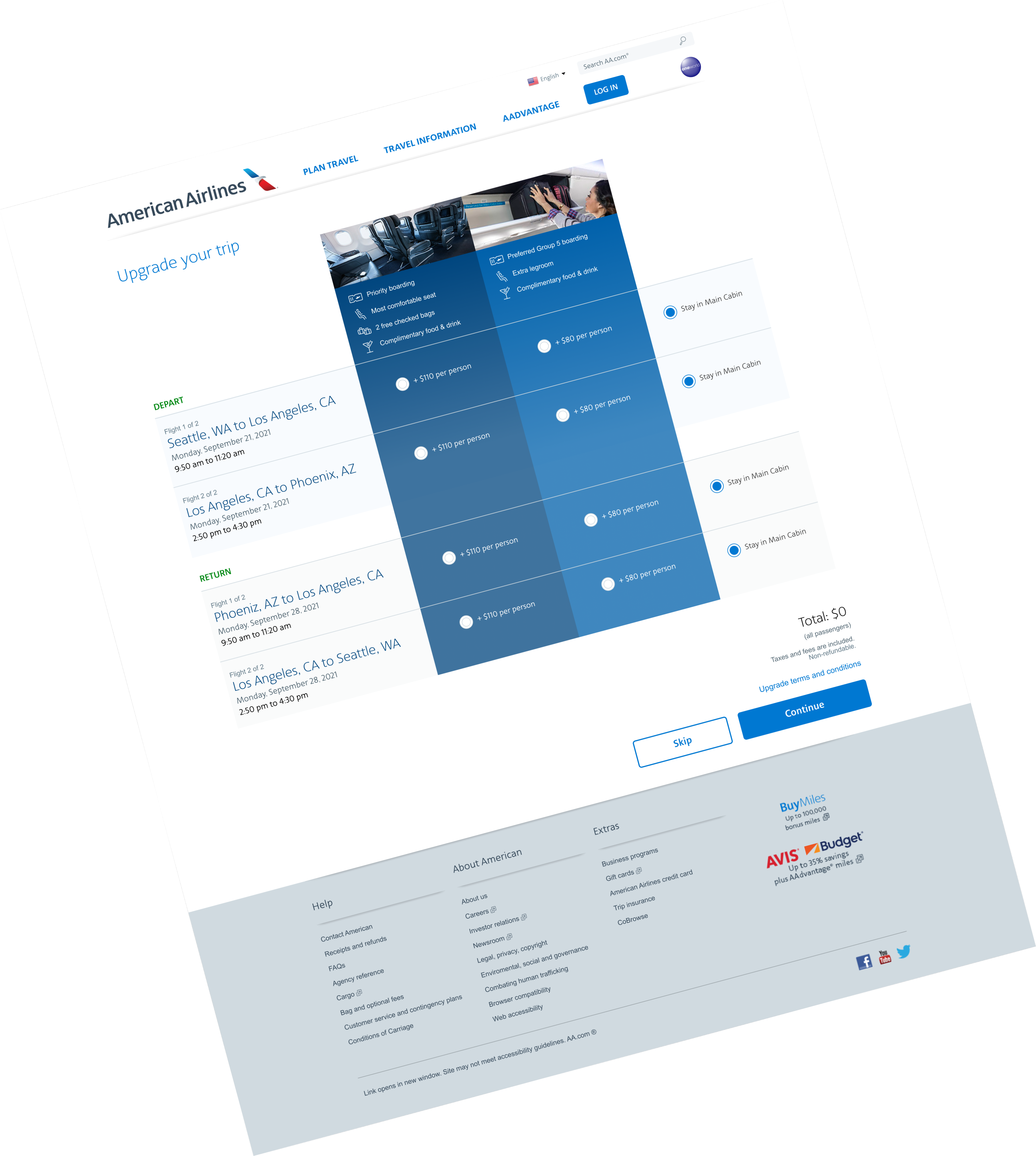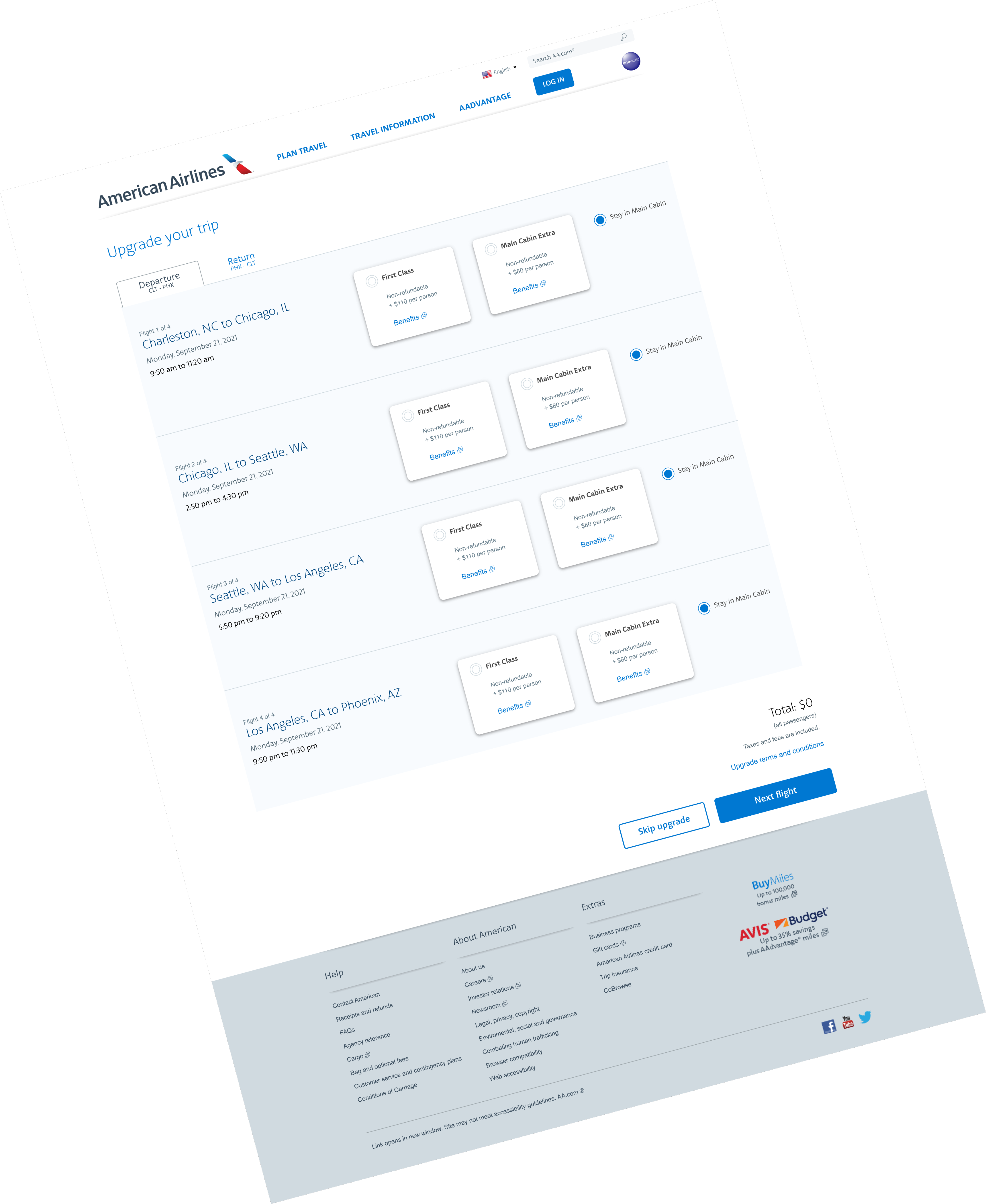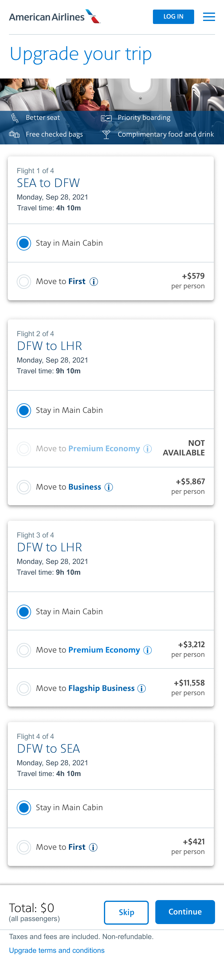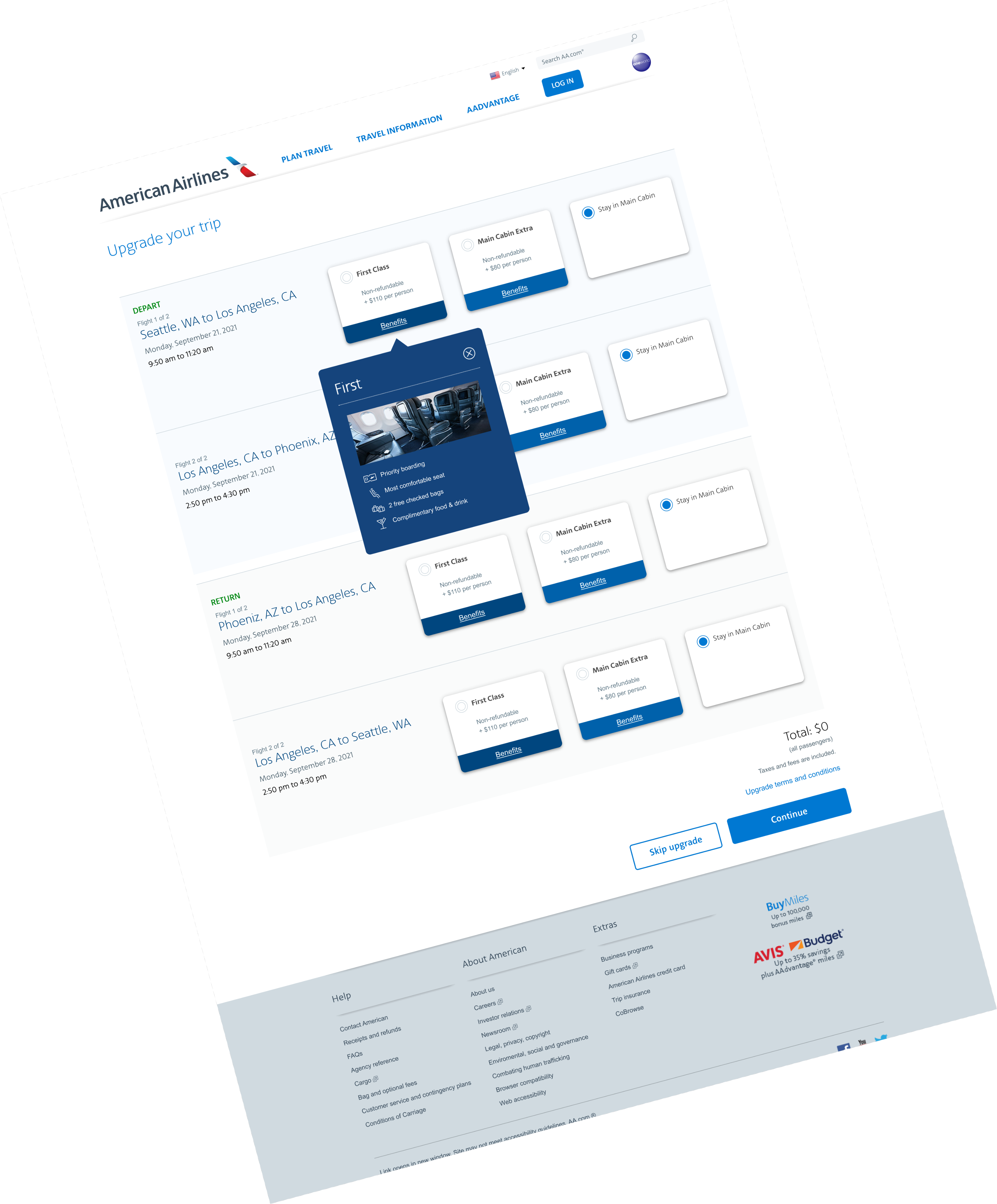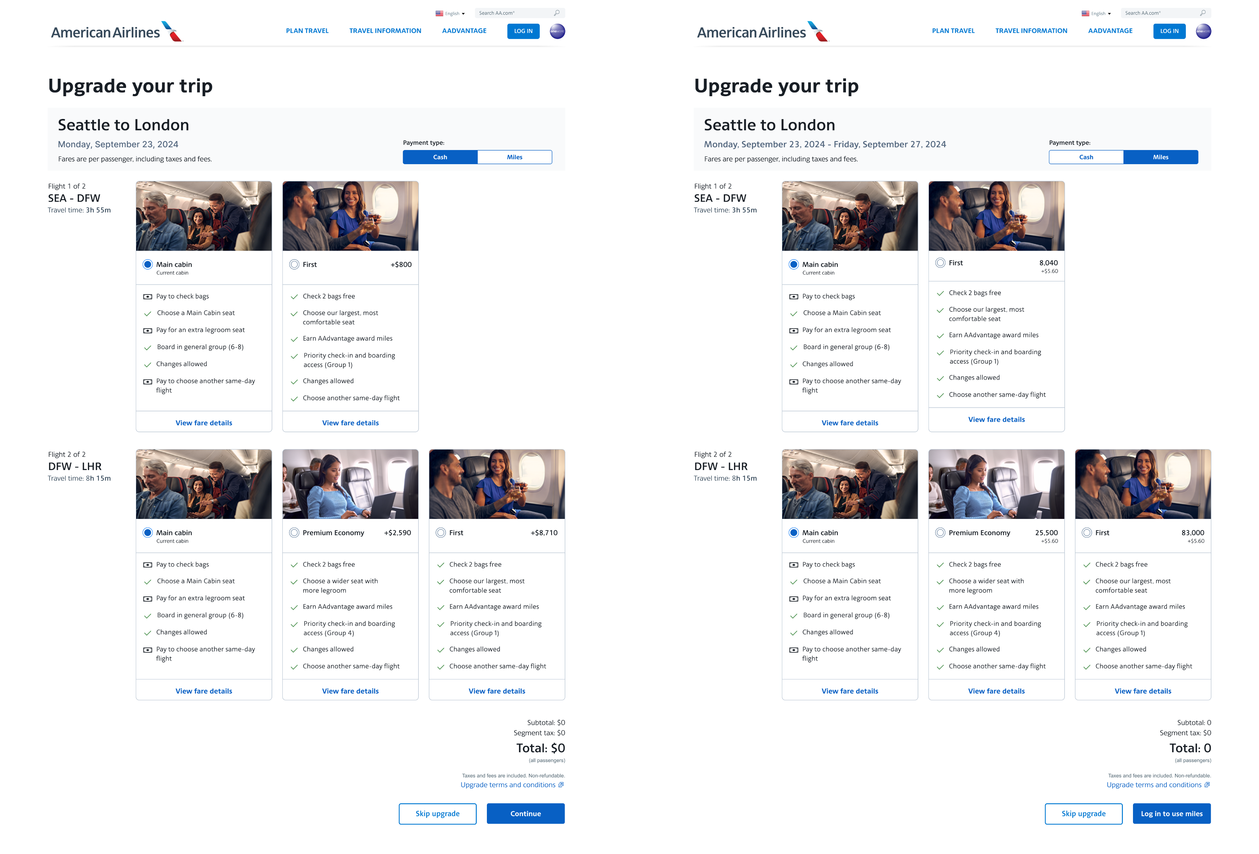 Solution: Design a page that will offer customers the flexibility to choose upgraded seats for each leg of the flight