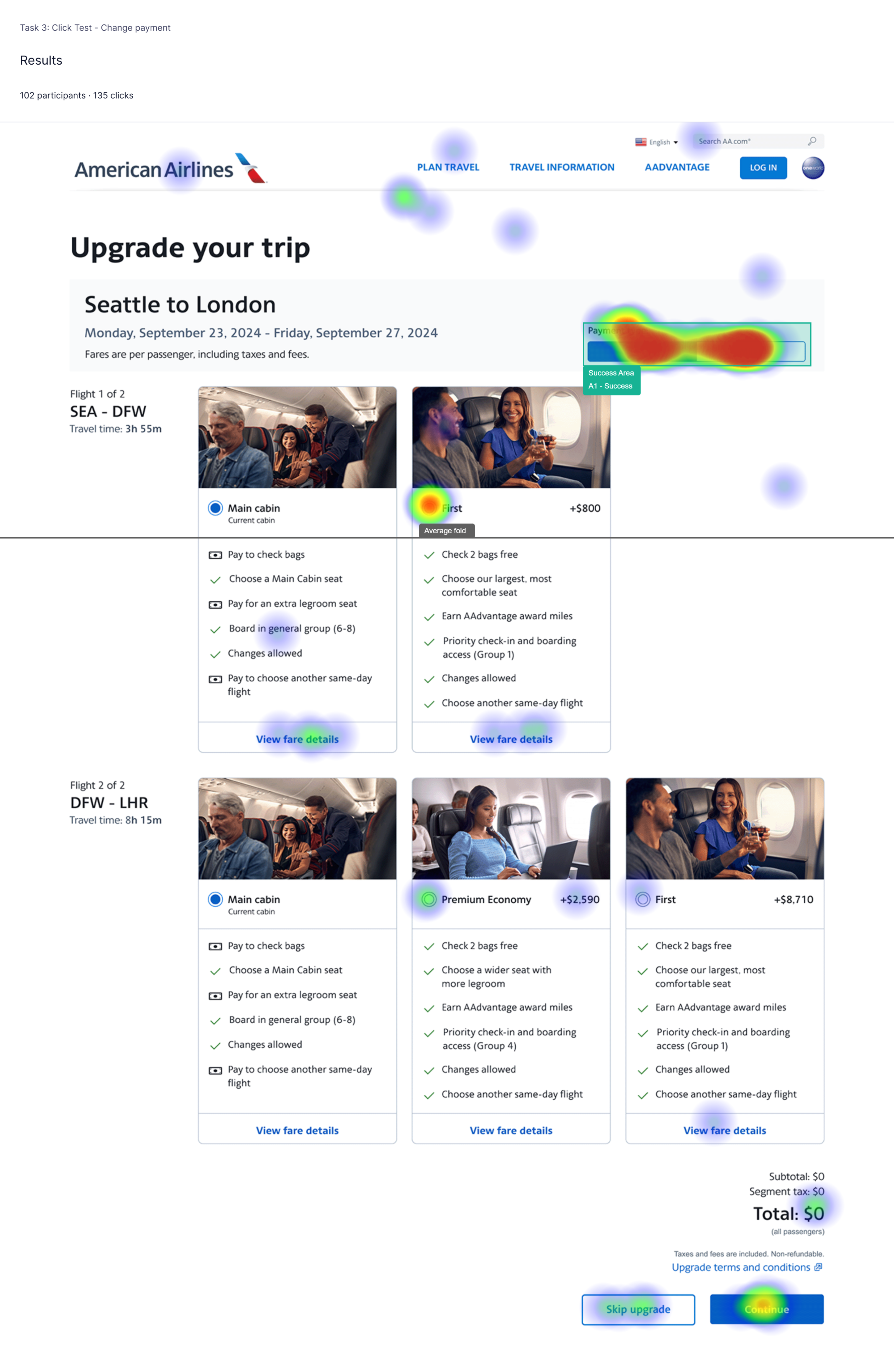 We tested the design in UserZoom with both guest users and loyalty members. Several rounds of testing were done and each successfully passed the comprehension questions around changing currencies, how to view their current miles balance, and the price they would pay per upgrade.